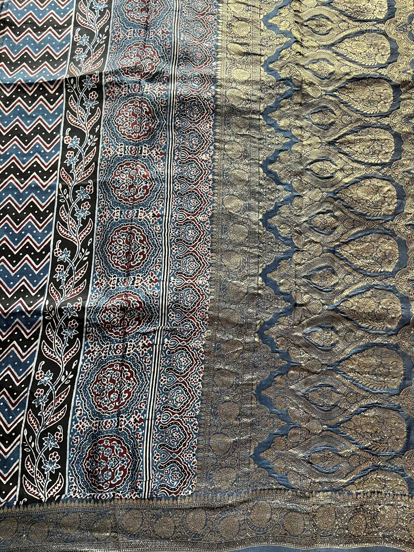 AJRAKH HANDBLOCKPRINT DOLA SILK SAREE