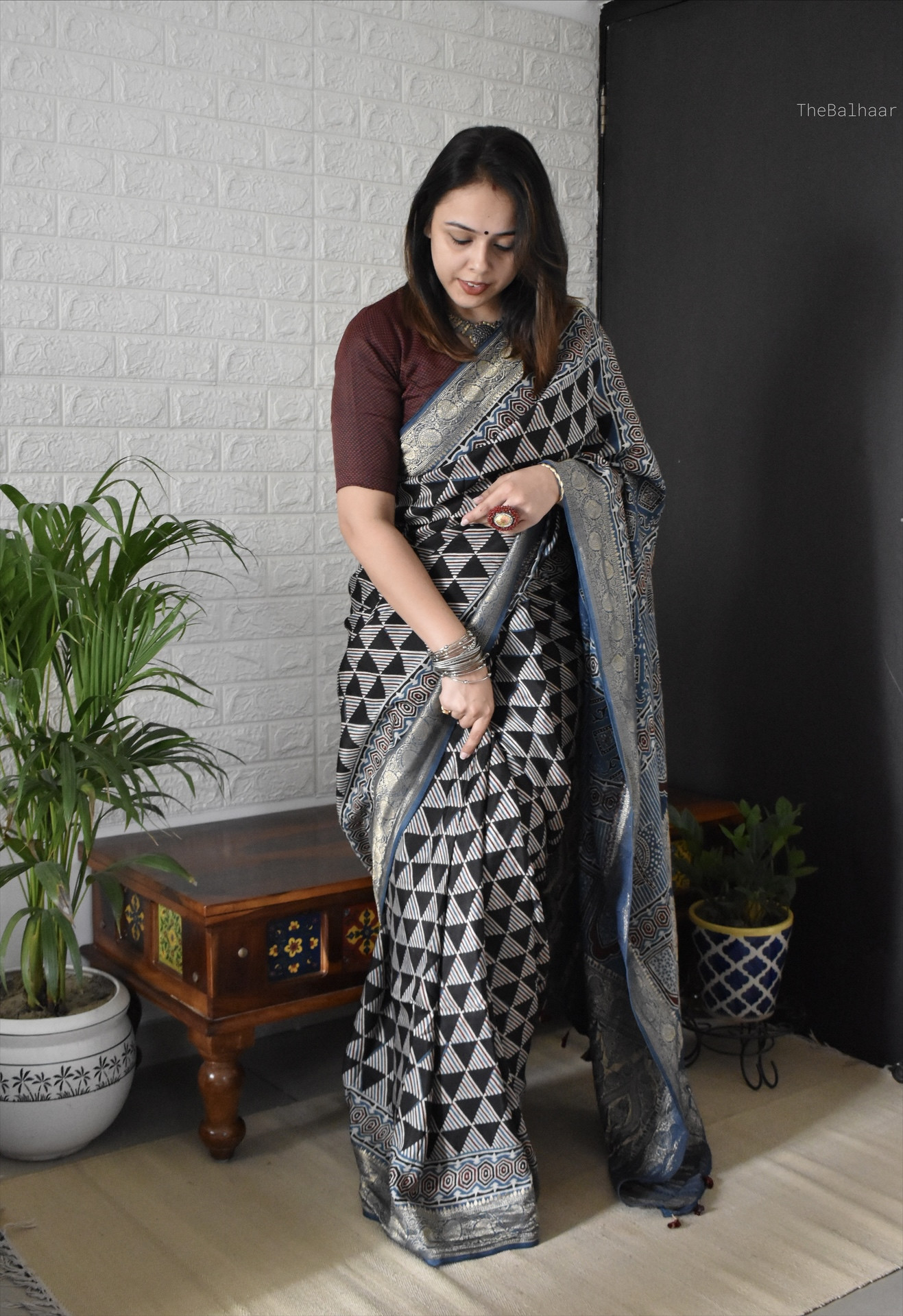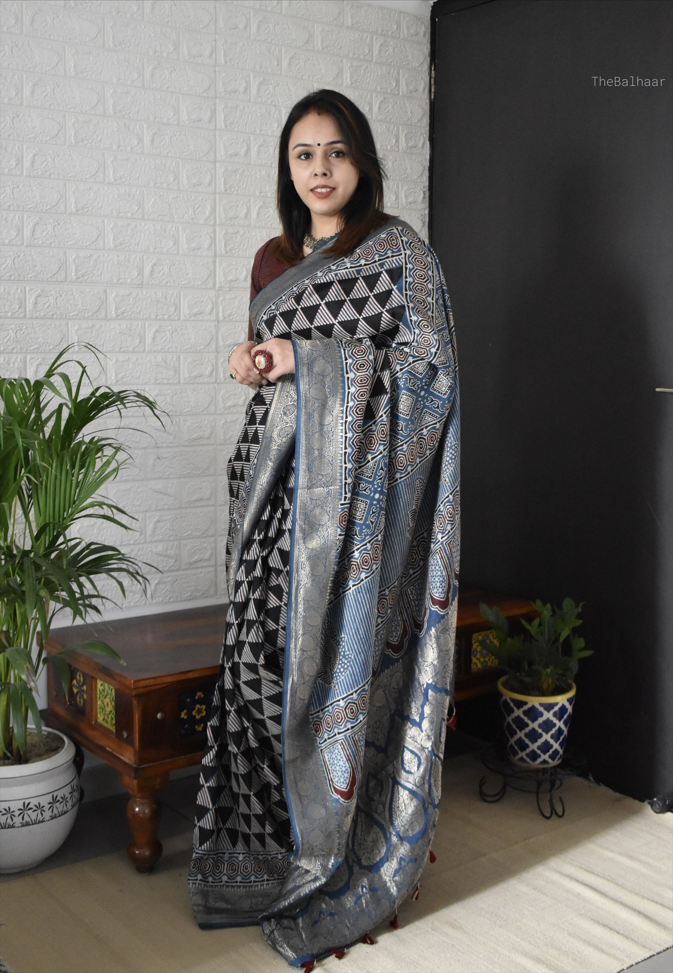 AJRAKH HANDBLOCKPRINT DOLA SILK SAREE