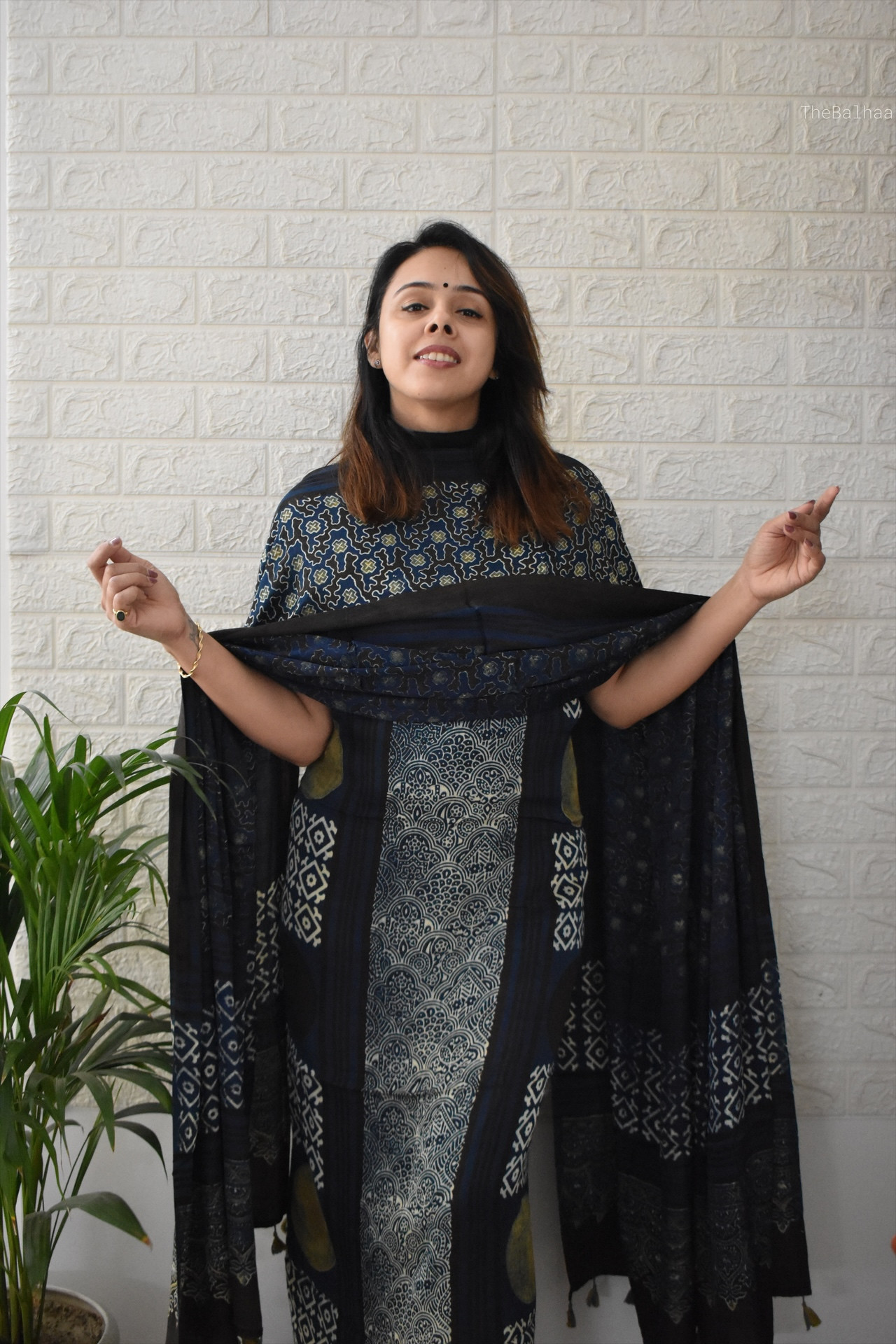Ajrakh modal handblockprint kurta with dupatta set!!
