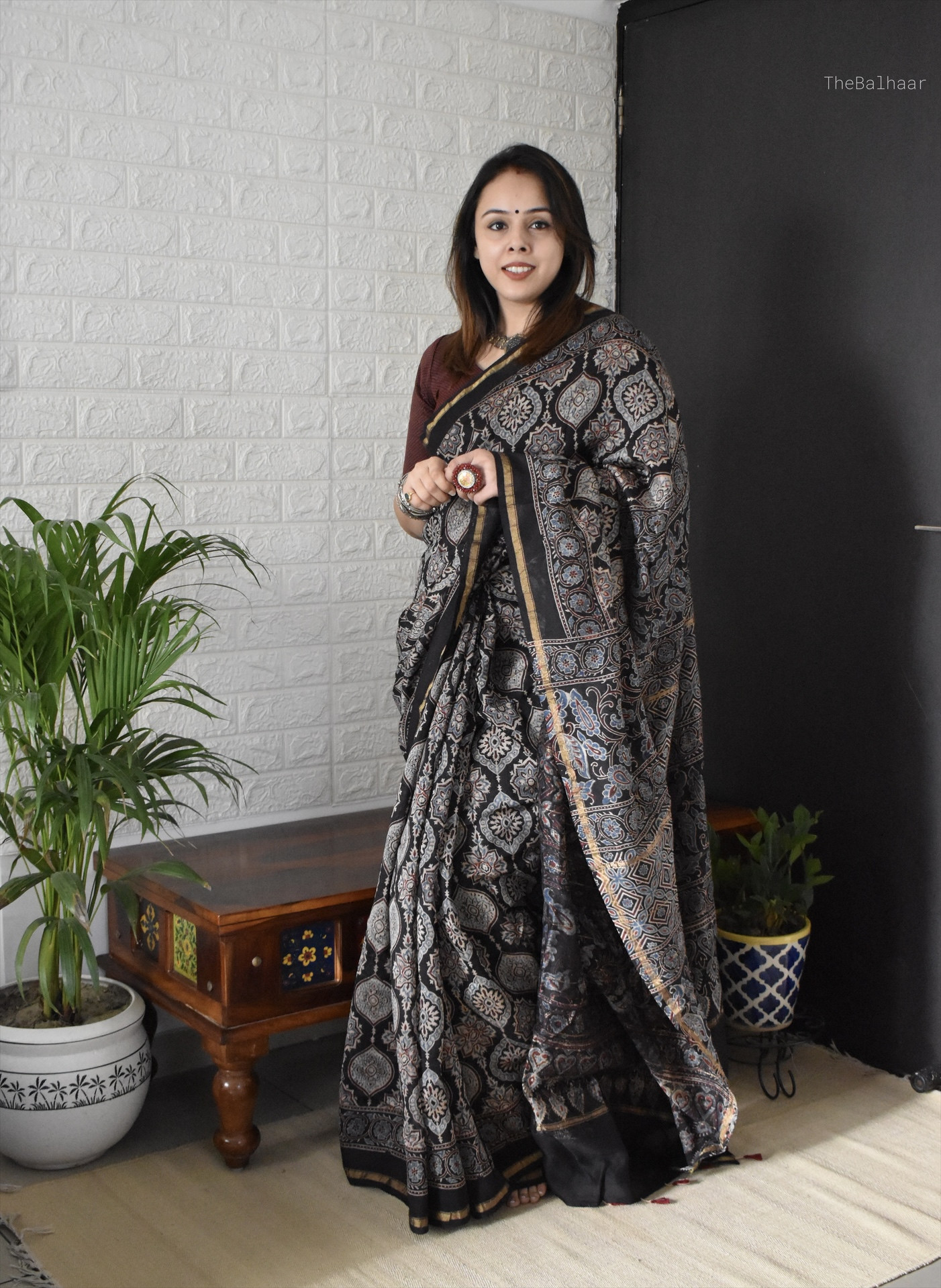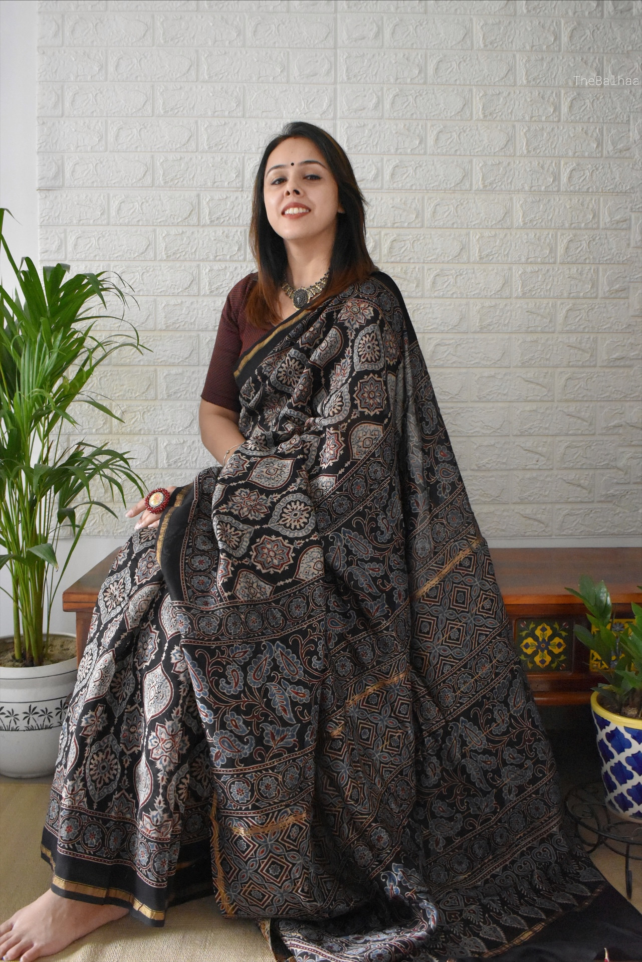 ⢠Ajrakh colours tend to be more earthy than reflected in the shoot.