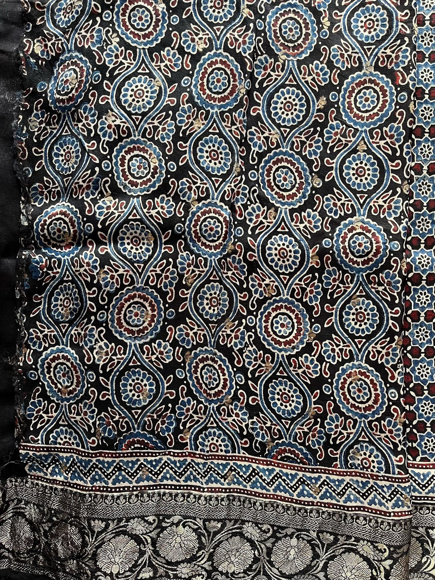 ⢠Ajrakh handblockprint silk cotton saree